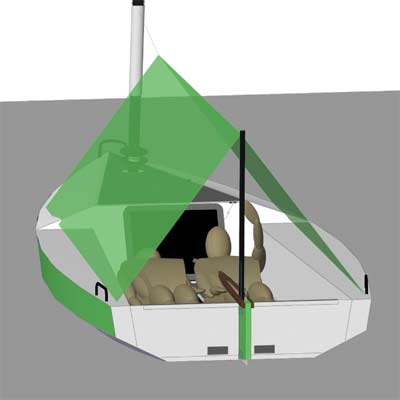 A boom tent over the cockpit will accomodate 2 sleeping aboard.
