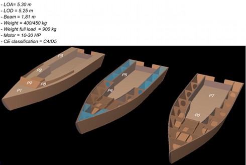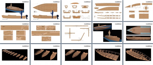 The plans detail all the parts and panels dimension, the parts nesting on plywood sheets, a complete building sequence in 3D.