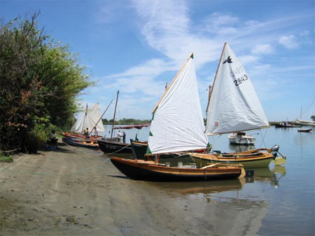 Steve Chambers out in California had built a Roar2 very quickly, in two or three weeks as I recall, and had gone off rowing with it and liked it a lot. He started looking for a design to learn sailing. He was thinking of my old Woobo design but got to really like the Roar2 bow which evolved from Toto. Could the two ideas be combined, a Woobo with a Toto bow. Would it be called Wooboto. Why not? And thus it came to be.