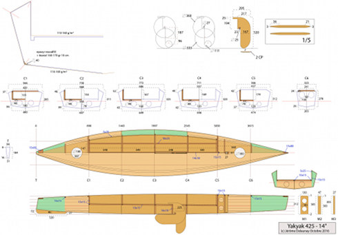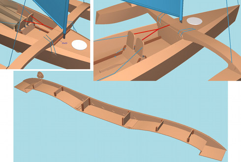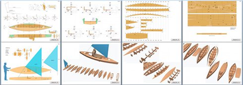 The plans detail all the parts and panels dimension, the parts nesting on plywood sheets, two rigs, a complete building sequence in 3D.